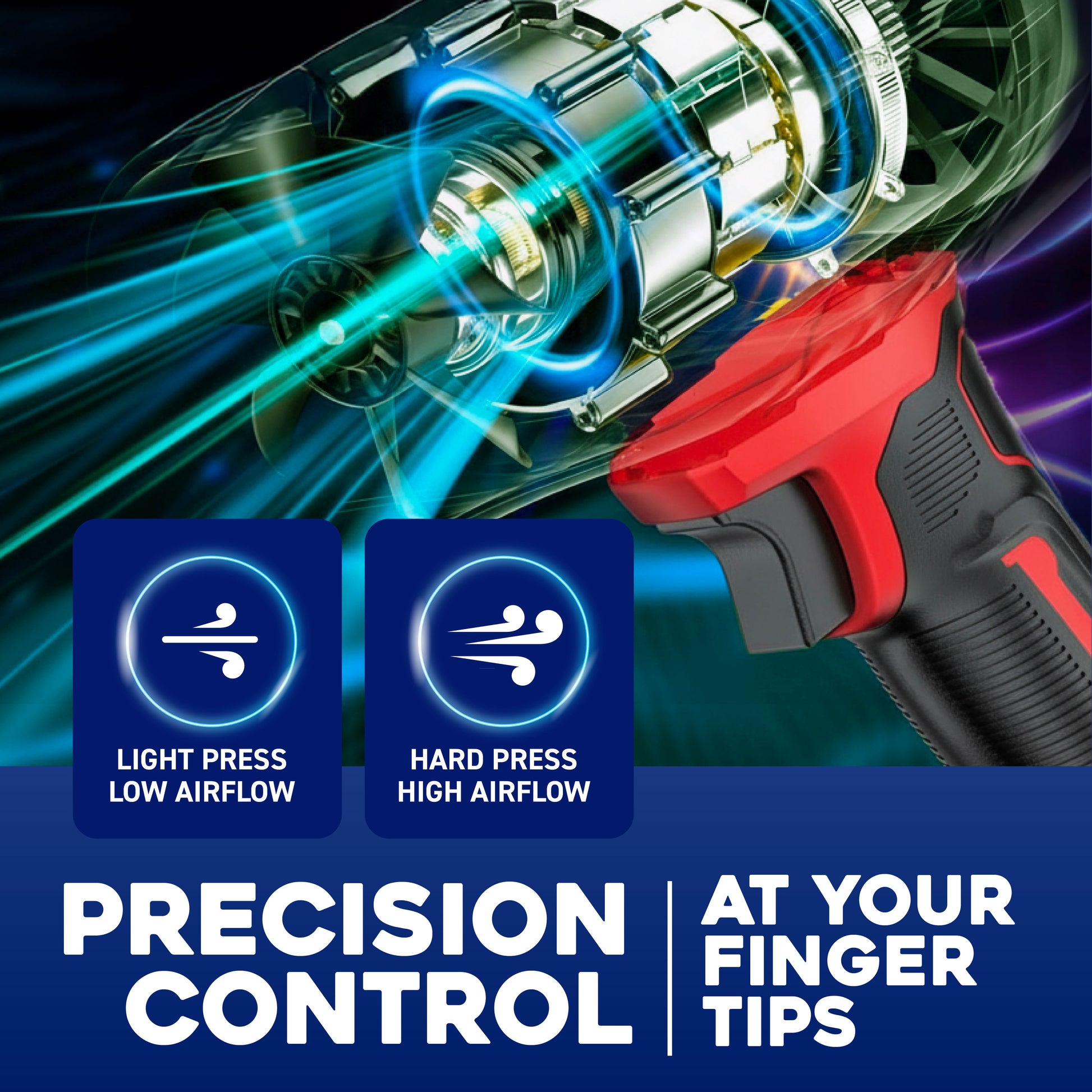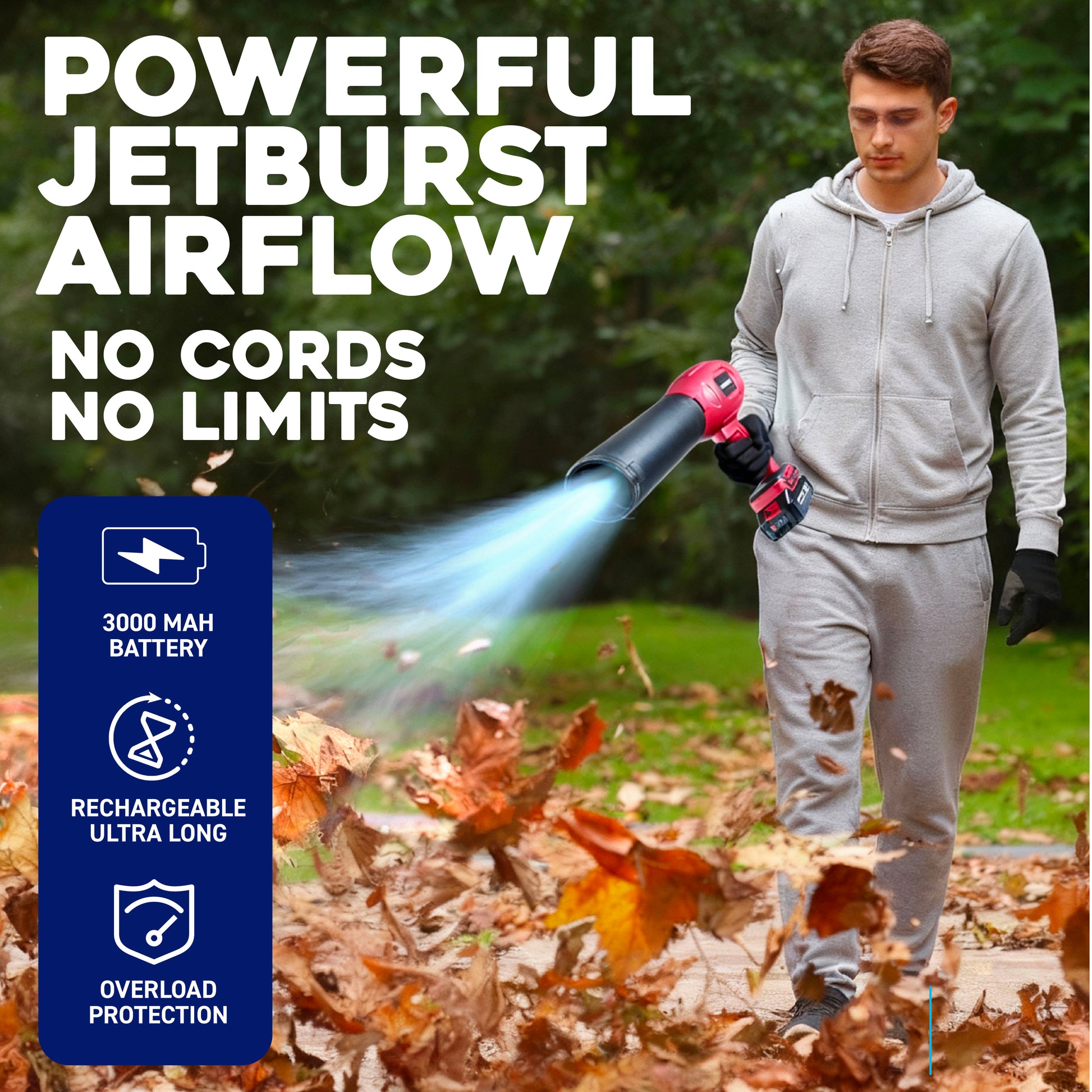 Turbo‑Charged JetBurst™ Power: High‑speed airflow from a precision‑engineered motor pushes debris, leaves, and dust with confidence.